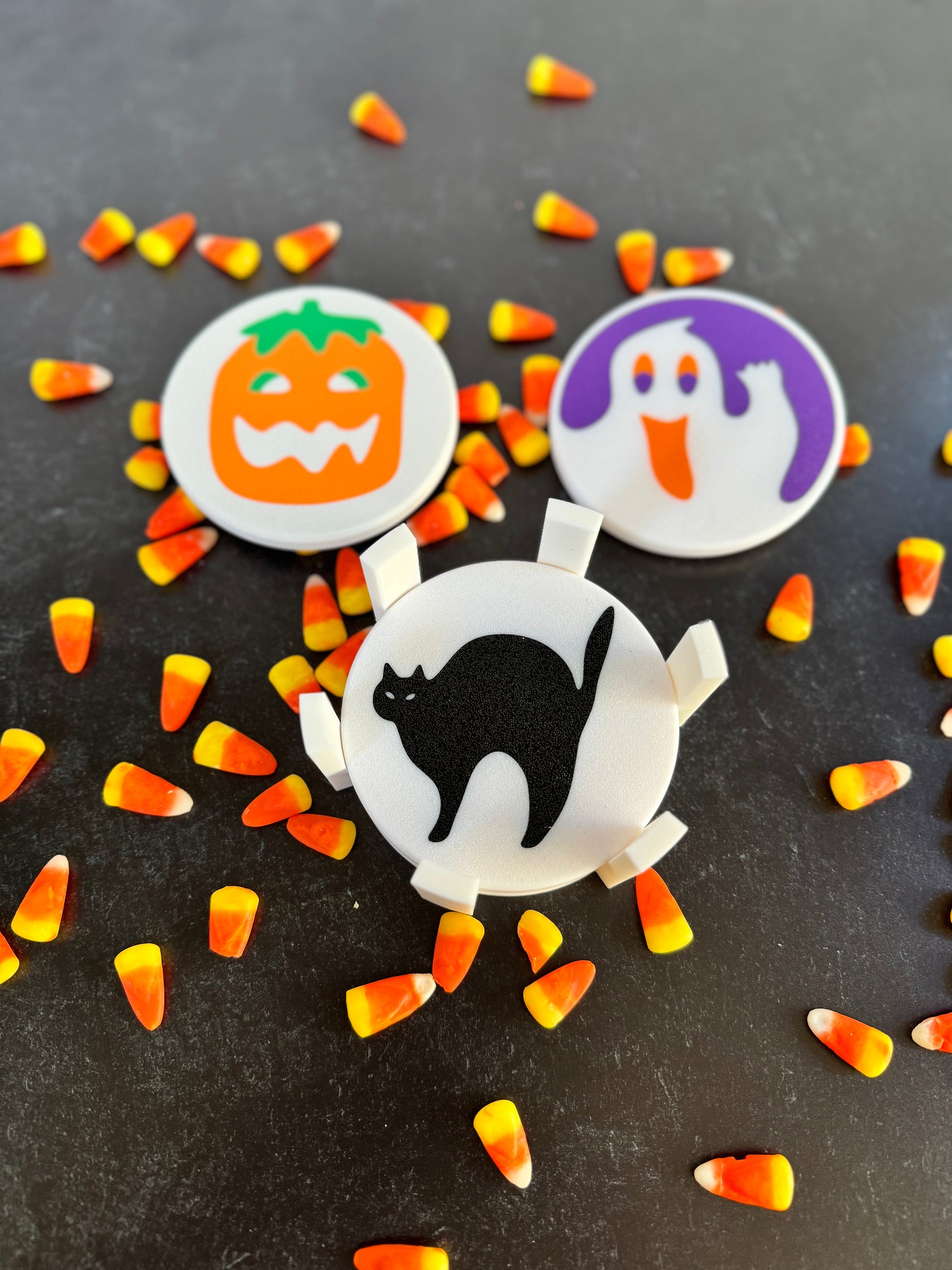 Crafted with precision, they're the perfect touch to evoke memories of crisp autumn evenings, warm ovens, and the comforting scent of freshly baked cookies filling the air. Ideal for your warmest brews, these coasters are more than just a safeguard for your table – they're a trip down memory lane. So, gather around with loved ones, share stories of Halloweens past, and let the cozy embrace of yesteryears wrap around you.