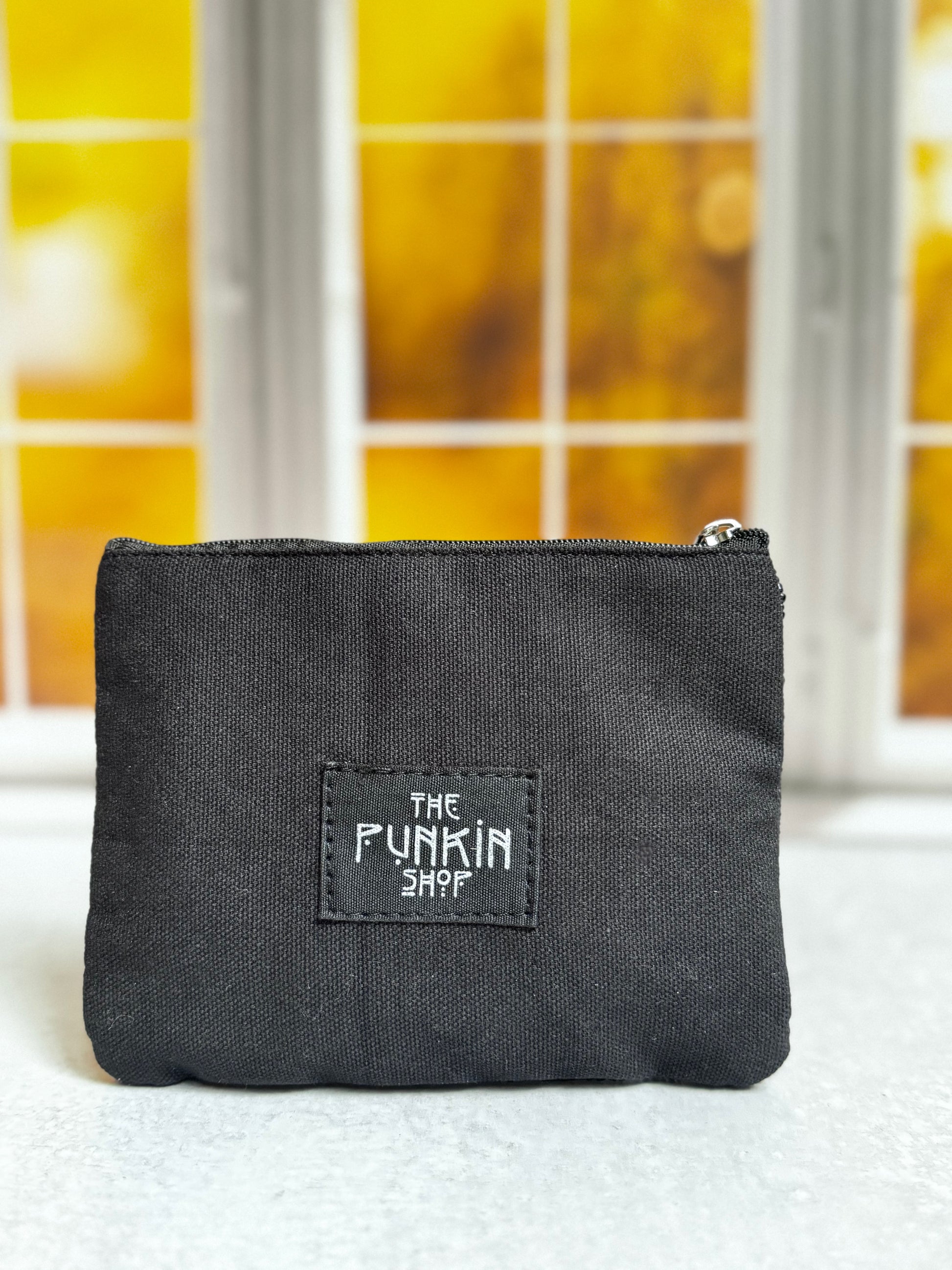 Ideal for carrying coins, cards, and small treasures, this handcrafted pouch is as functional as it is enchanting. The back is made of sturdy black fabric with a secure zipper closure and The Punkin Shop’s signature stitched label, ensuring a high-quality touch.