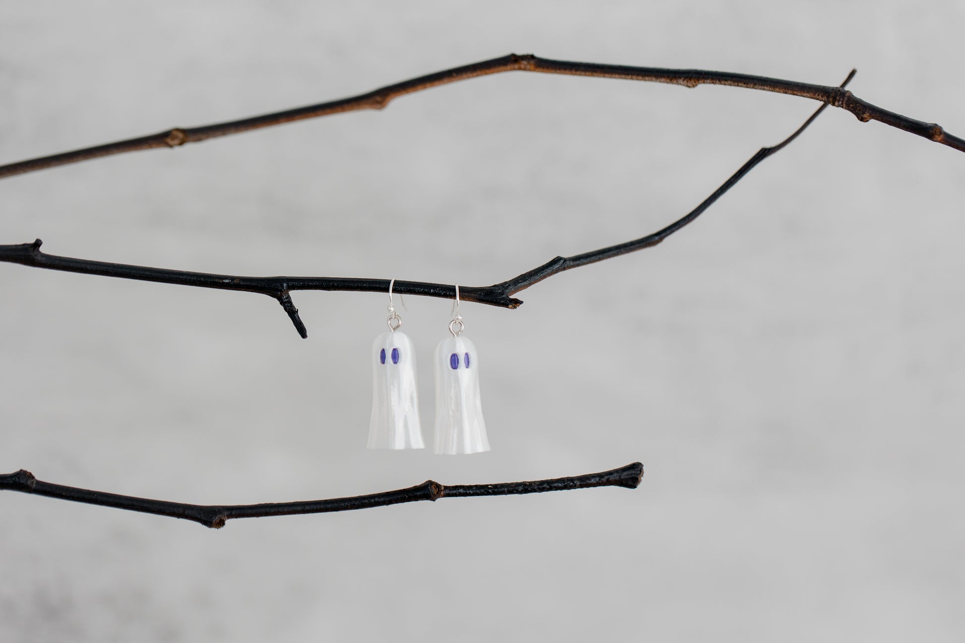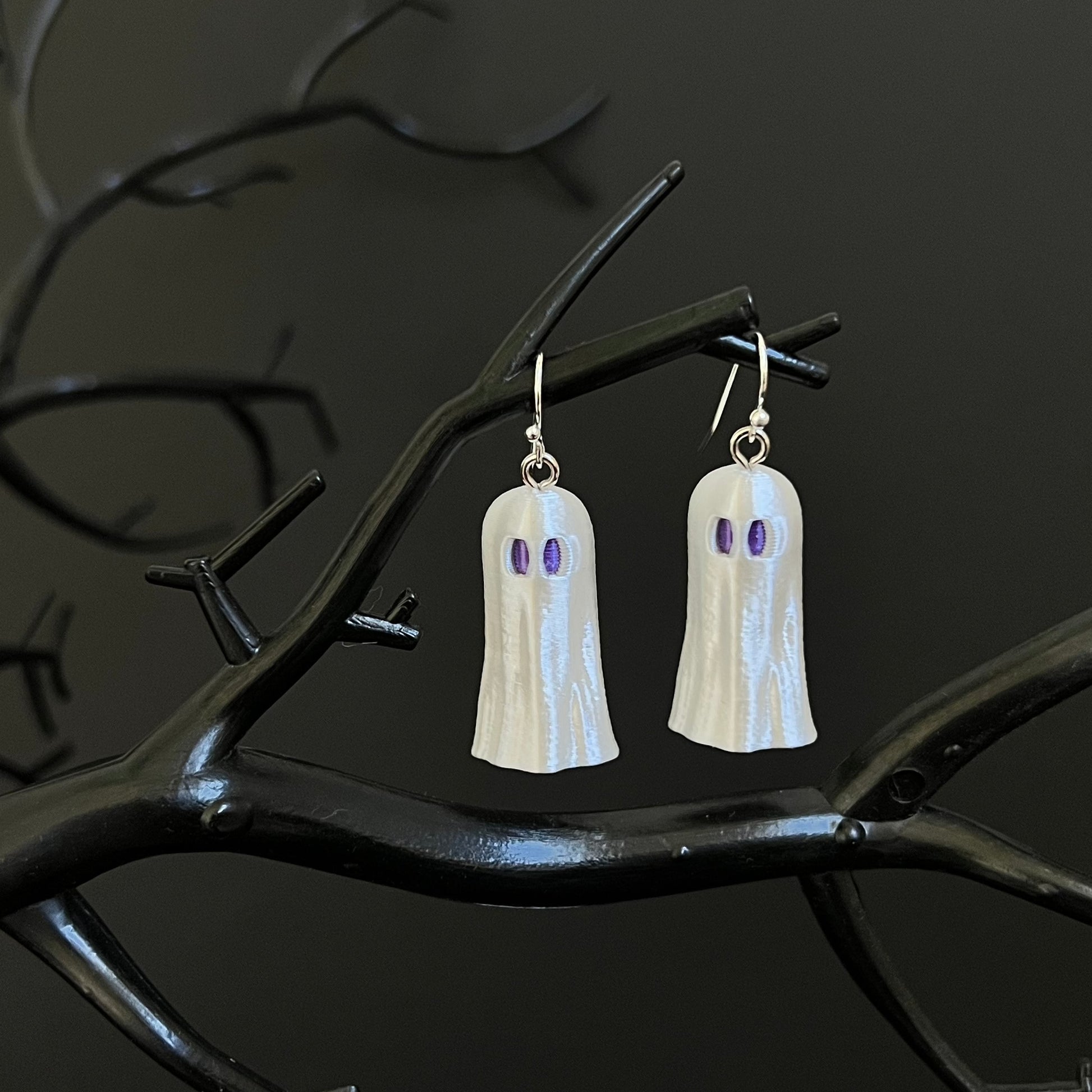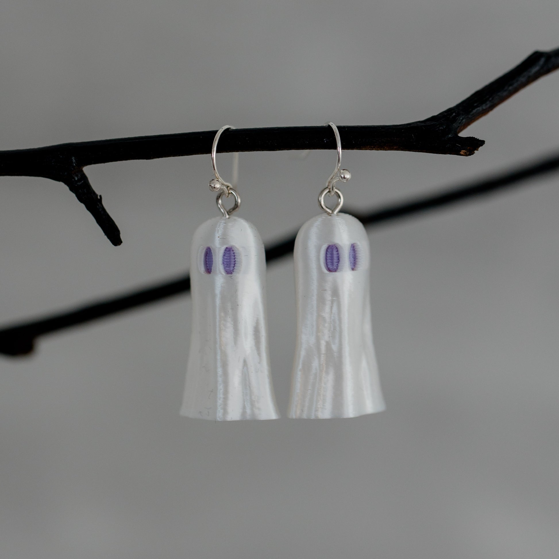 Paranormal Pearl Ghost Halloween Earrings - Darker Purple Eyes