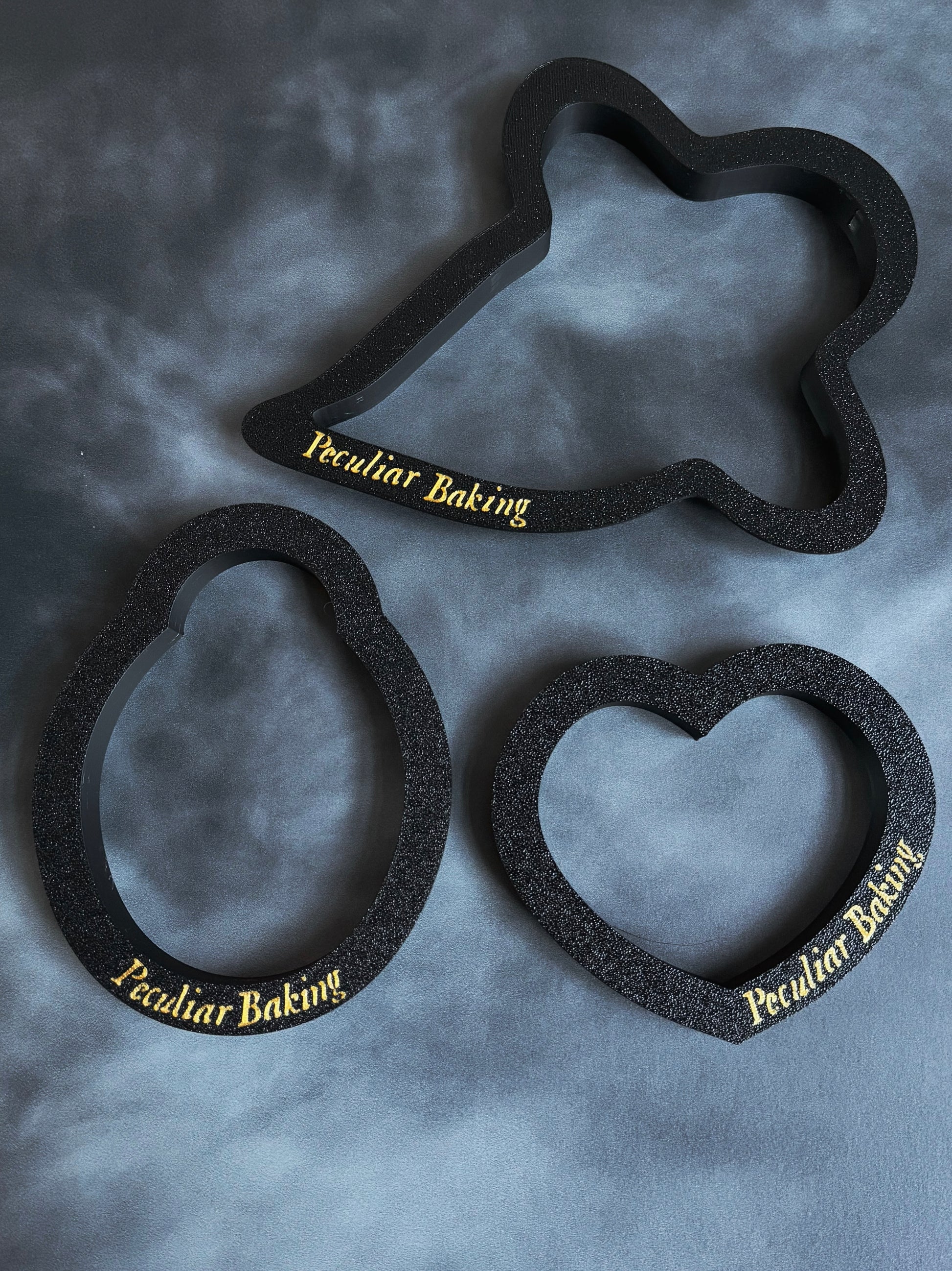 Introducing the Peculiar Pie Cutter Set, straight from the pages of Peculiar Baking, a Practical Guide to Strange Confections by Nikk Alcaraz, and now a reality for your own kitchen! These aren’t your grandma’s pie cutters (unless your grandma is a quirky witch with a taste for the strange). Crafted with precision and whimsy, this set includes three perfectly peculiar cutters: