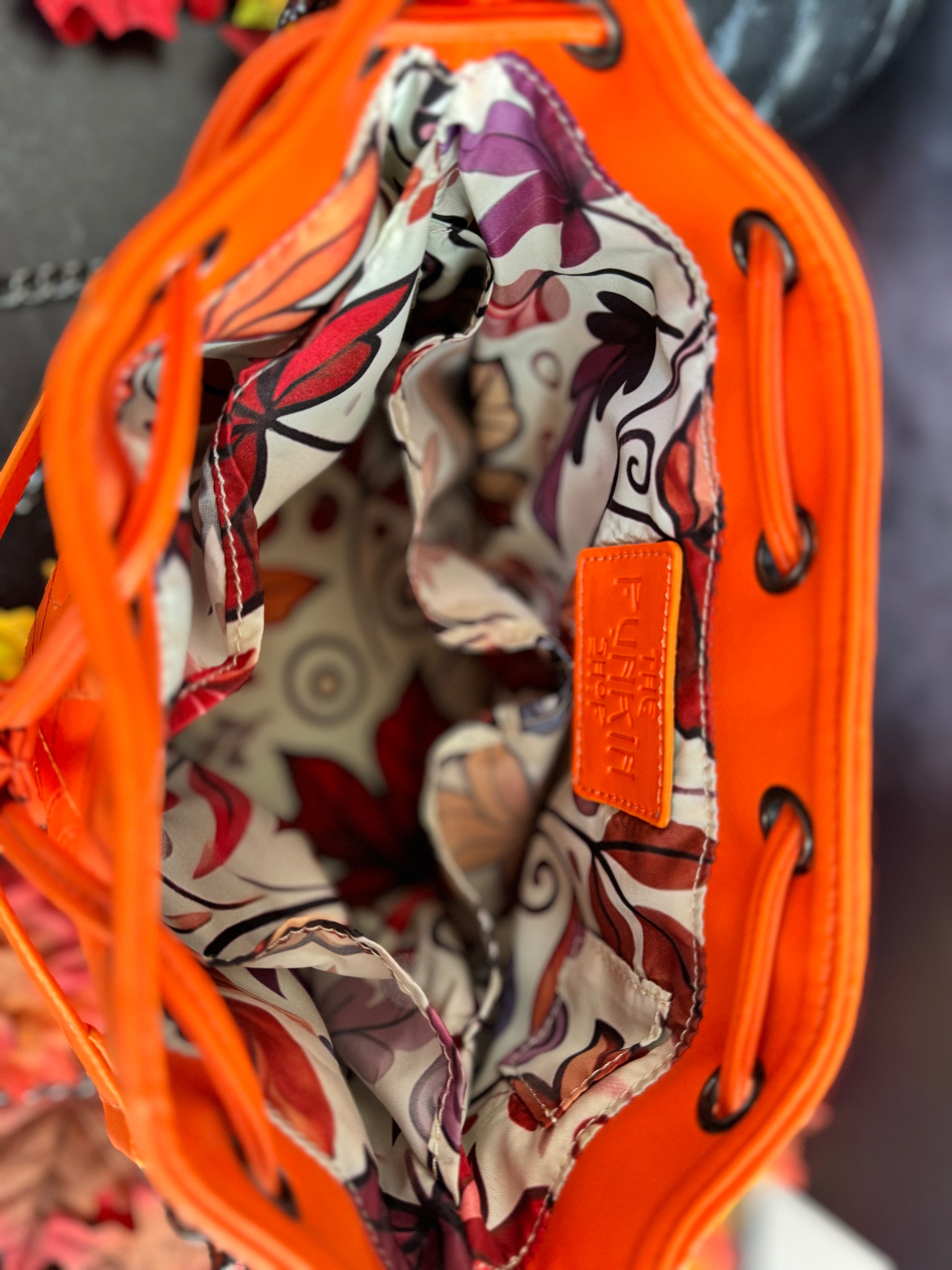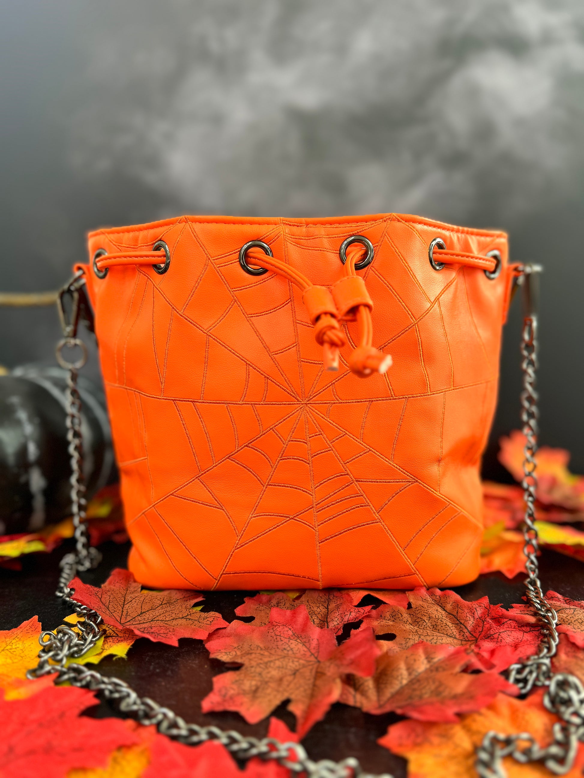 Step into the season of crisp air, crunchy leaves, and Halloween nostalgia with this new collection! 🎃🍂 This unique pumpkin bucket bag is inspired by the iconic sight of overflowing leaf bags from our childhood, raking up memories of those magical fall days. Whether you're using it to stash candy, carry fall essentials, or simply as a statement piece, this bag brings back that electric Halloween vibe we all know and love. 🍁✨