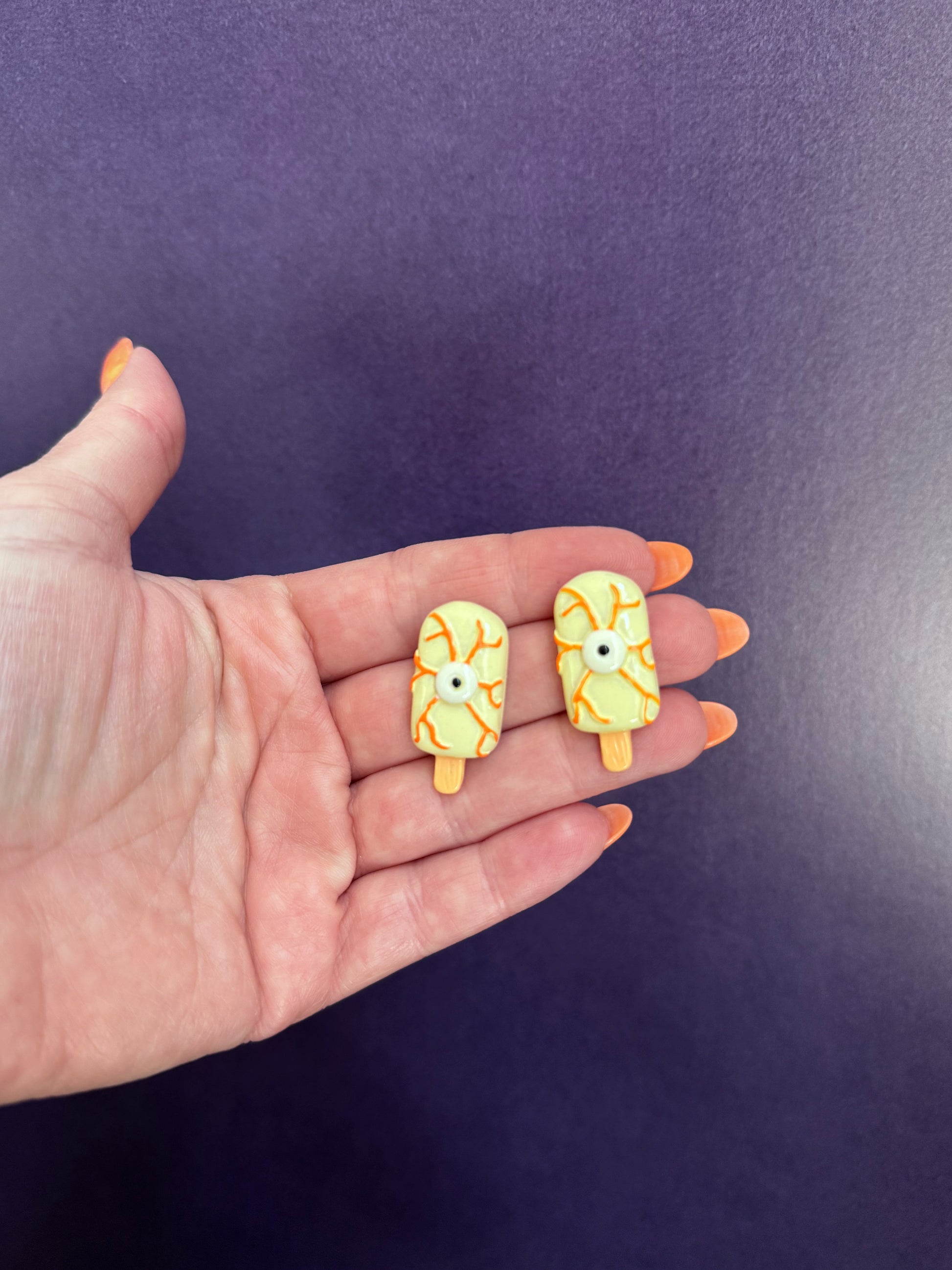 Cool off with a creepy twist! These Eyeball Popsicle Earrings are the ultimate blend of spooky and sweet—perfect for Summerween celebrations, horror lovers, or anyone who lives for Halloween vibes year-round. Featuring ghoulish green popsicles with bloodshot veins and a staring eyeball at the center, these crafted earrings are a scream-worthy treat for your ears.